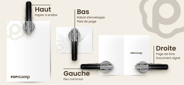 C’est pourquoi il est très important que vous choisissiez bien l’usage que vous allez faire de votre presse. Pour les livres, on utilise un positionnement bas ou droit. Pour une enveloppe, plutôt en bas pour le mettre sur le rabat.