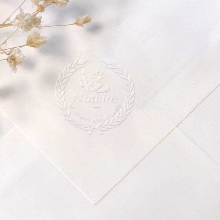 Officialisez vos documents notariés avec une signature professionnelle grâce à notre modèle de timbre à sec intitulé : Tampon sec notaire.