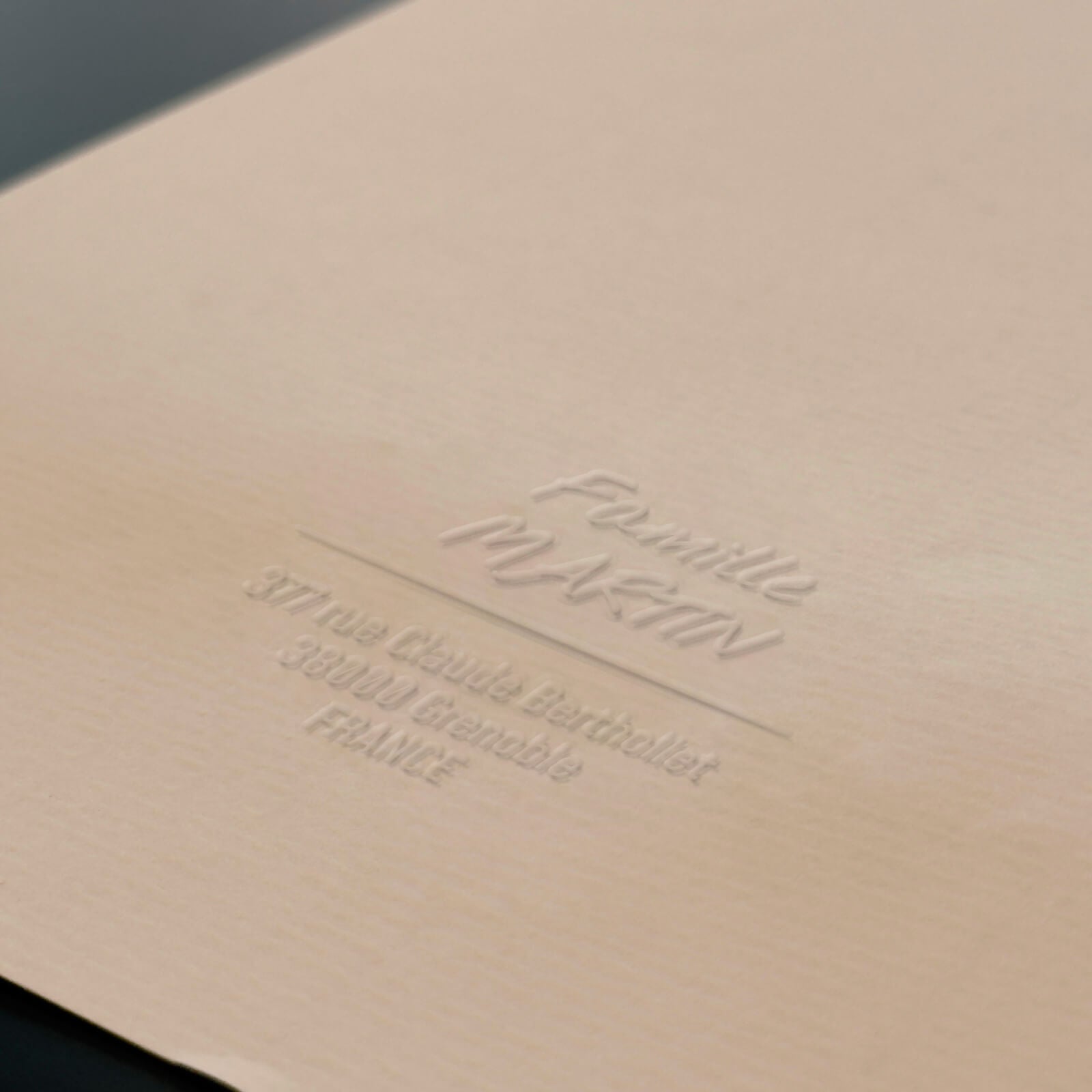 Ajoutez une touche unique à vos correspondances avec notre embosseur personnalisé. Idéal pour marquer vos enveloppes, courriers ou documents importants d'une adresse élégante et professionnelle.