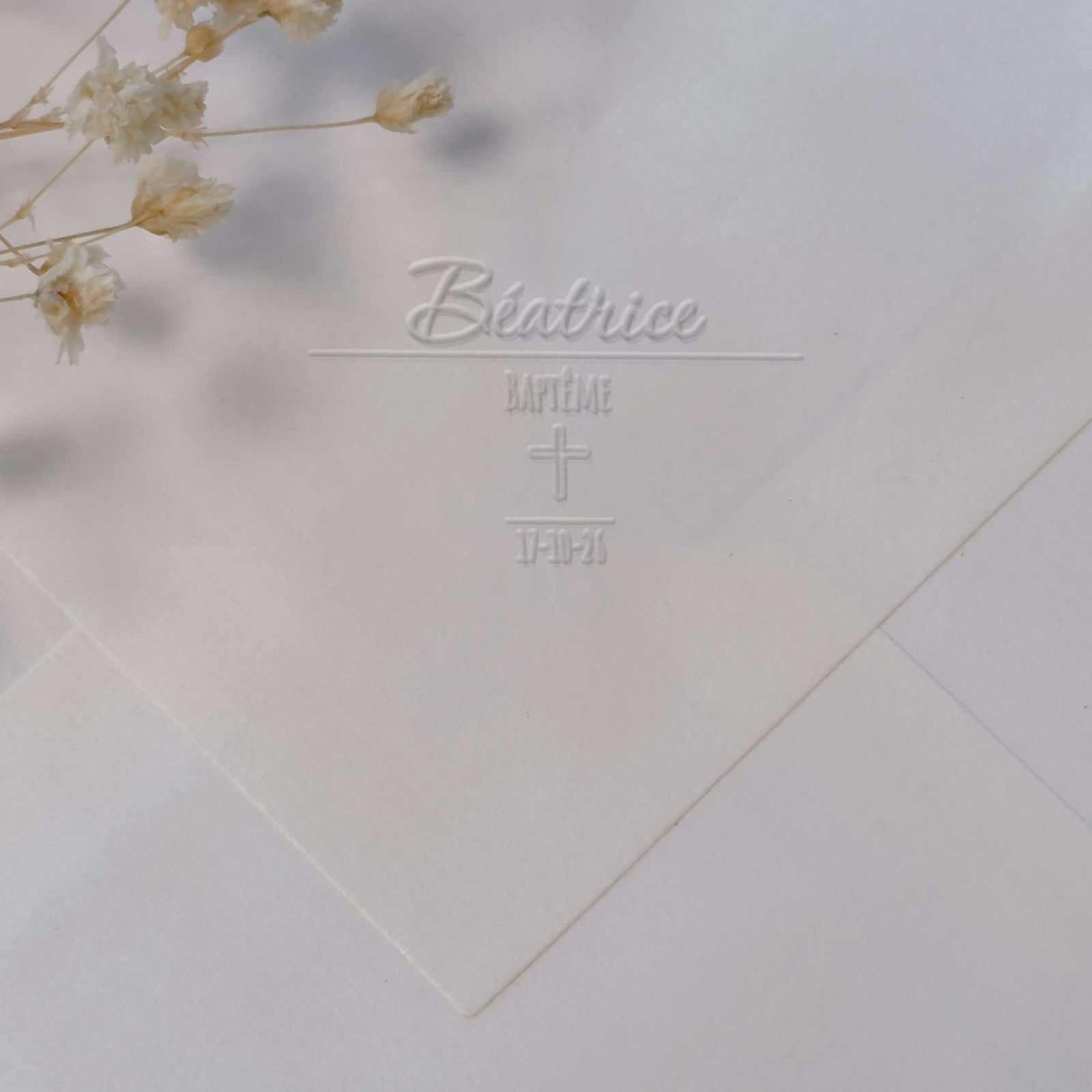 Personnalisez ce modèle rectangulaire vertical pour pince à gaufrer, idéal pour marquer vos créations baptismales avec élégance.