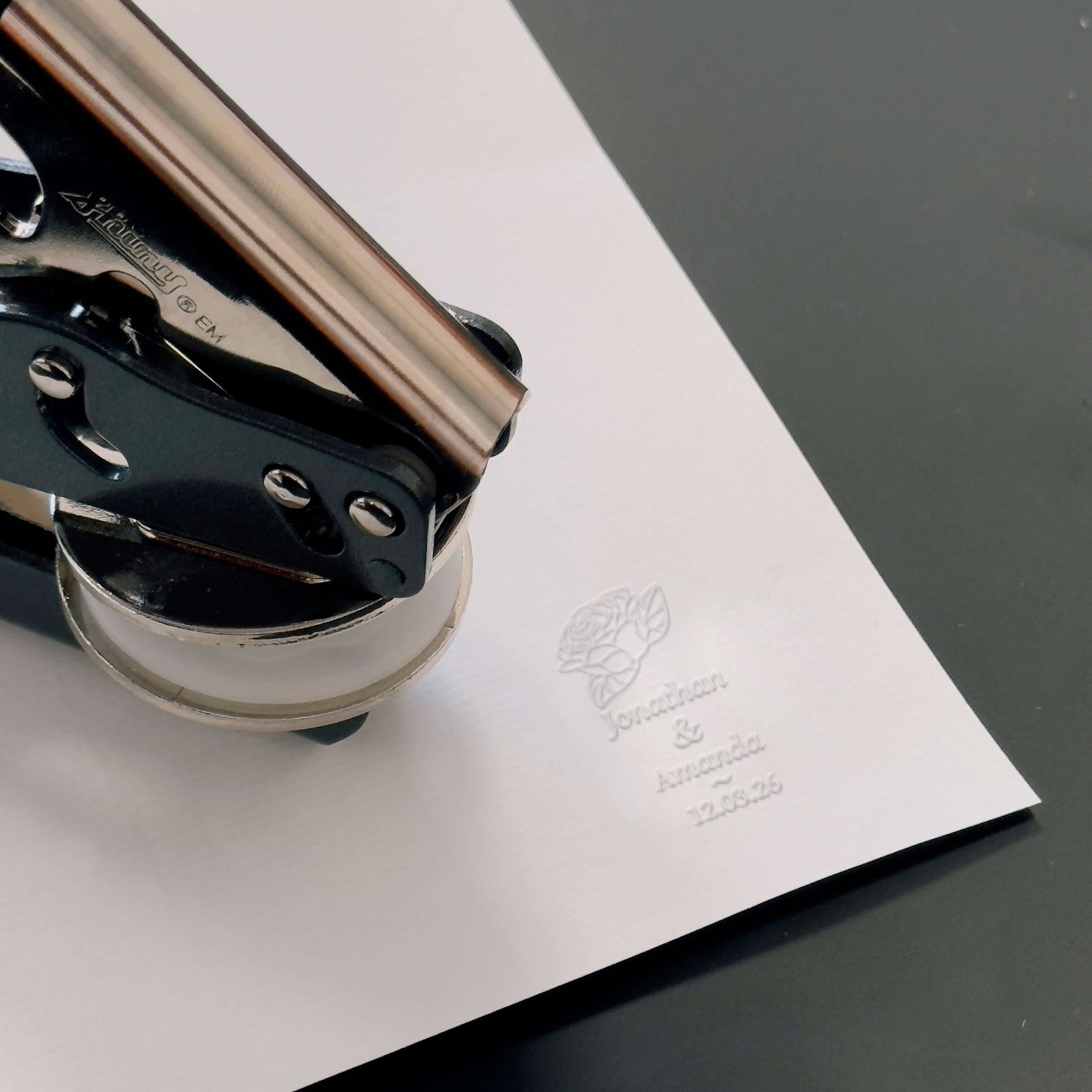 Créez une empreinte sèche raffinée avec ce modèle de rose stylisée aux lignes délicates, parfait pour personnaliser vos faire-part de mariage.
