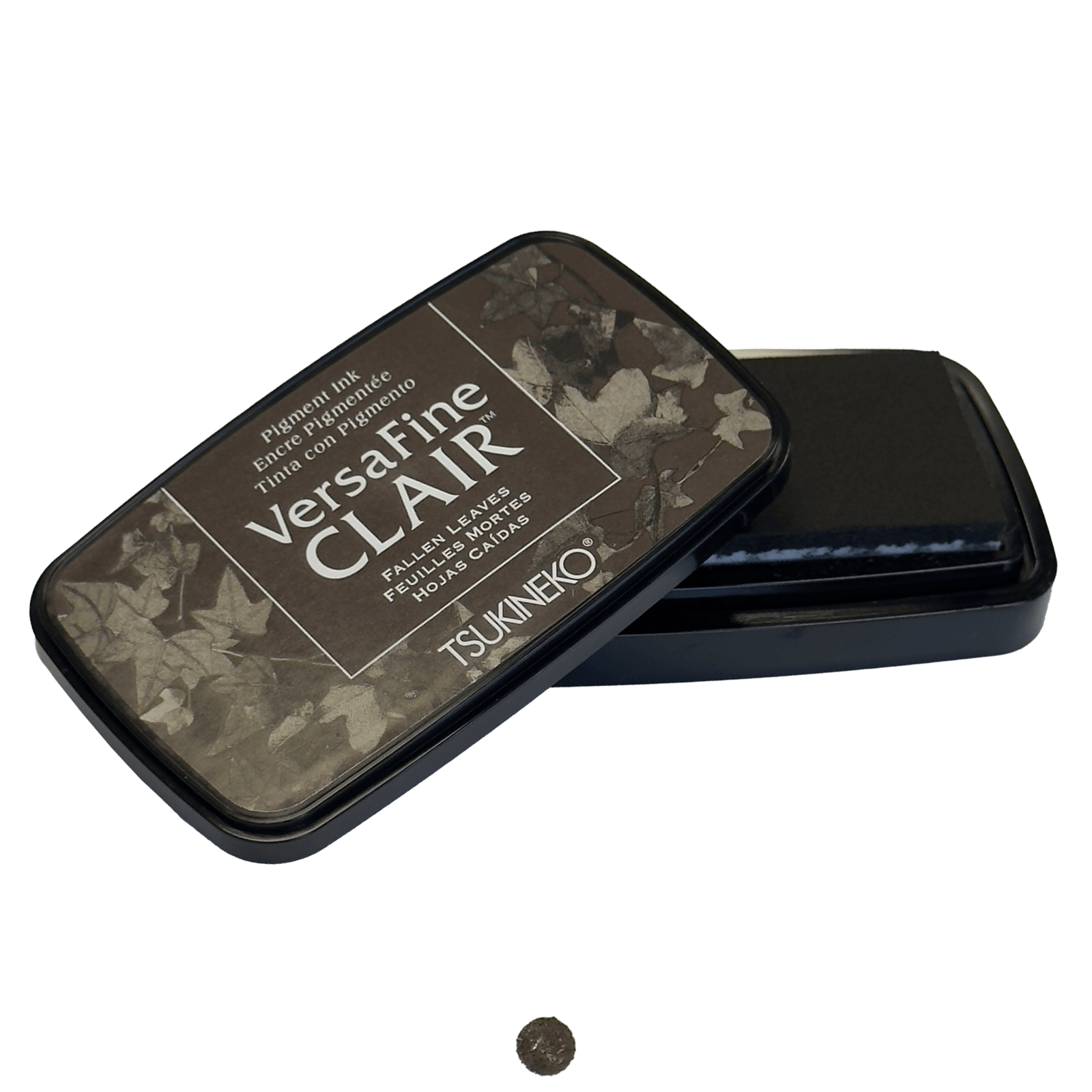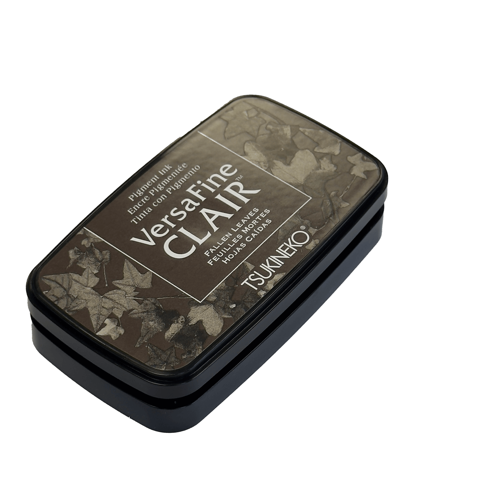 Capturez l'esprit automnal avec l'encre VersaFine CLAIR Feuilles Tombées, une teinte marron chaleureuse dans son boîtier rectangulaire noir orné d'un décor feuillage.