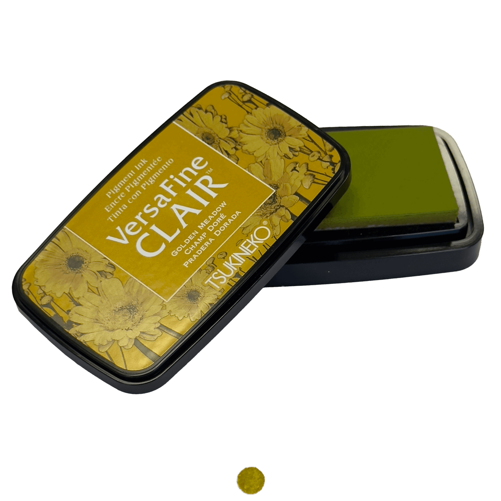 L'encre VersaFine Clair Champ Doré transforme vos créations avec sa teinte vert olive sophistiquée, parfaite pour capturer les détails les plus fins de vos tampons.