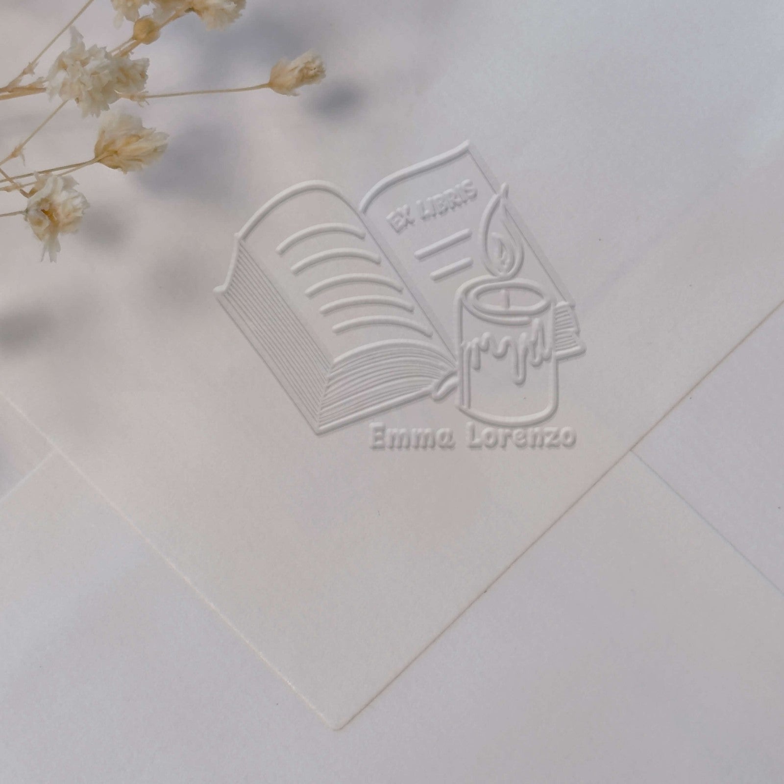 Créez votre ex-libris personnalisé avec ce motif authentique représentant un livre ouvert éclairé par une bougie, parfait pour marquer vos ouvrages d'une empreinte raffinée.