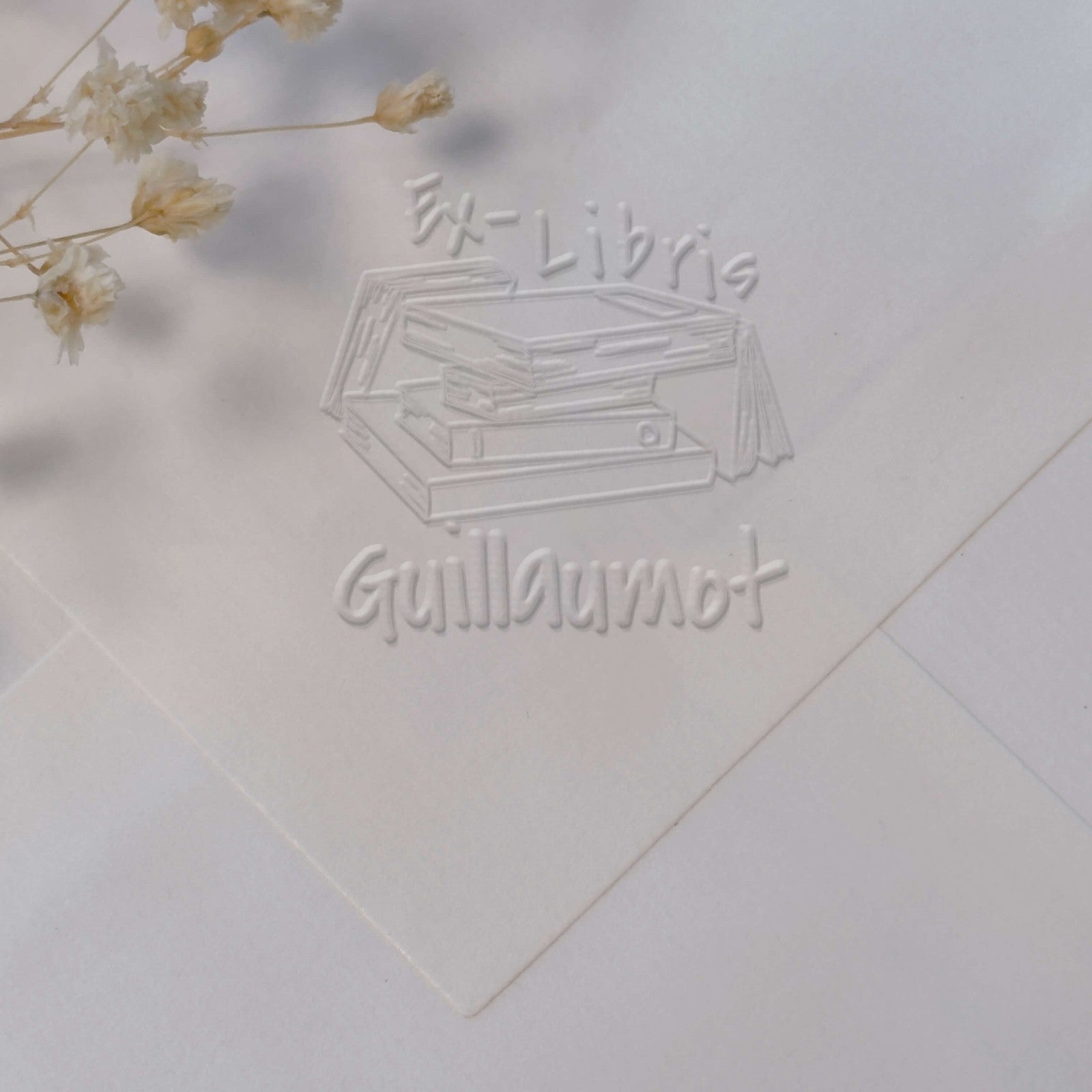 Créez votre ex-libris personnalisé avec cette élégante illustration de livres empilés, parfaite pour marquer vos ouvrages d'une empreinte distinctive et raffinée.