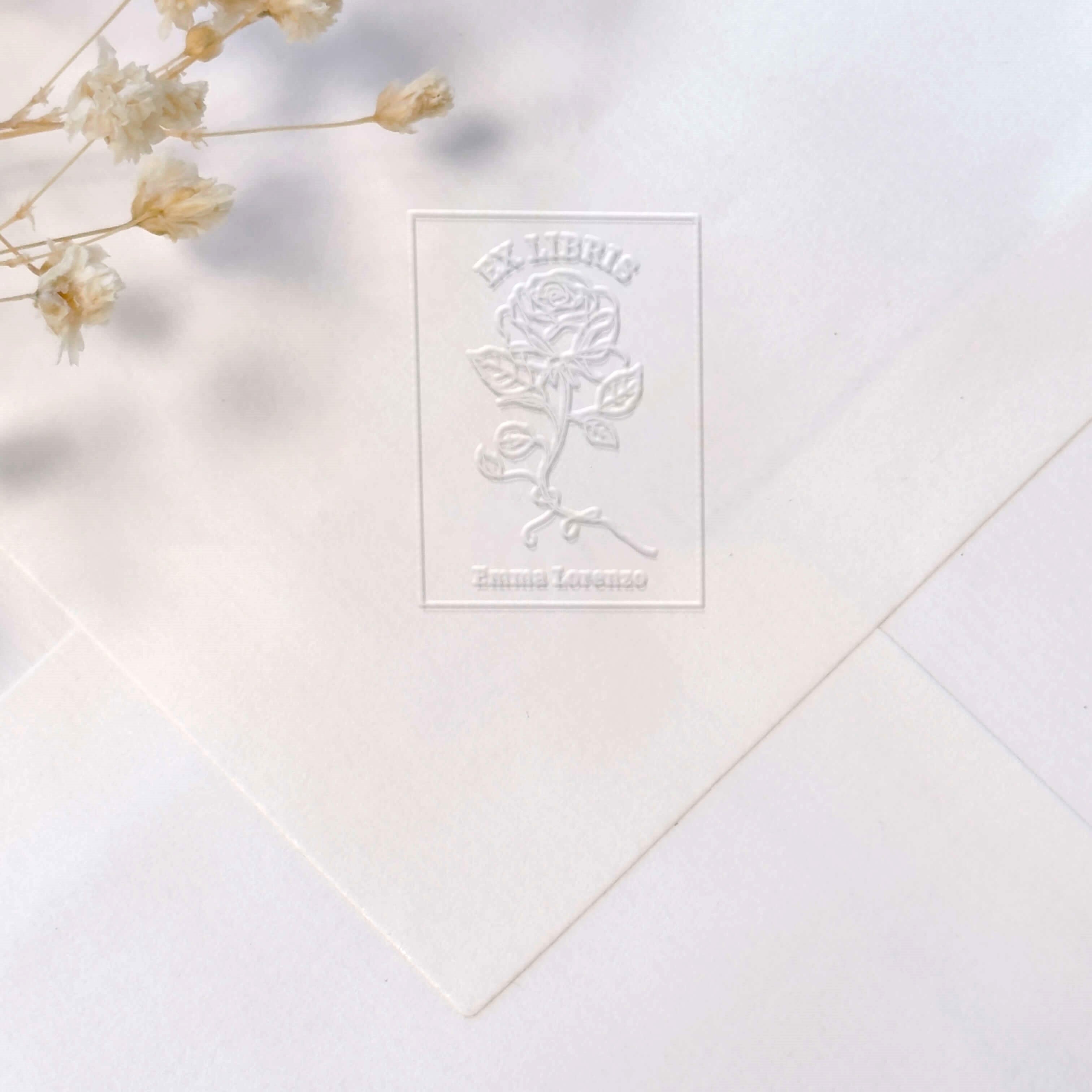 Créez votre ex-libris personnalisé avec cette élégante rose linéaire encadrée, parfaite pour marquer vos livres avec style et distinction.