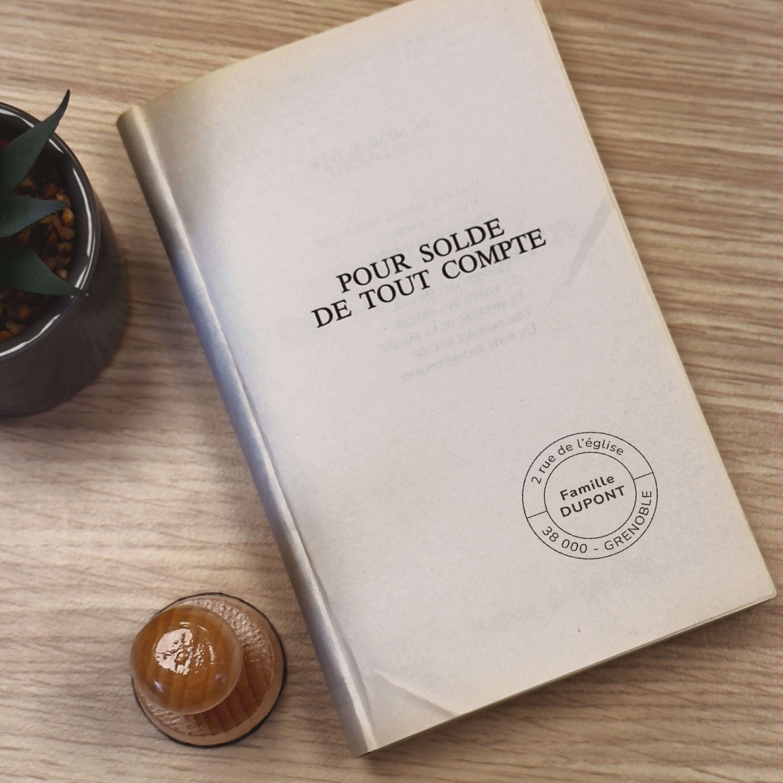 Créez votre tampon adresse rond avec ce modèle minimaliste à double cercle, parfait pour un marquage élégant et professionnel.