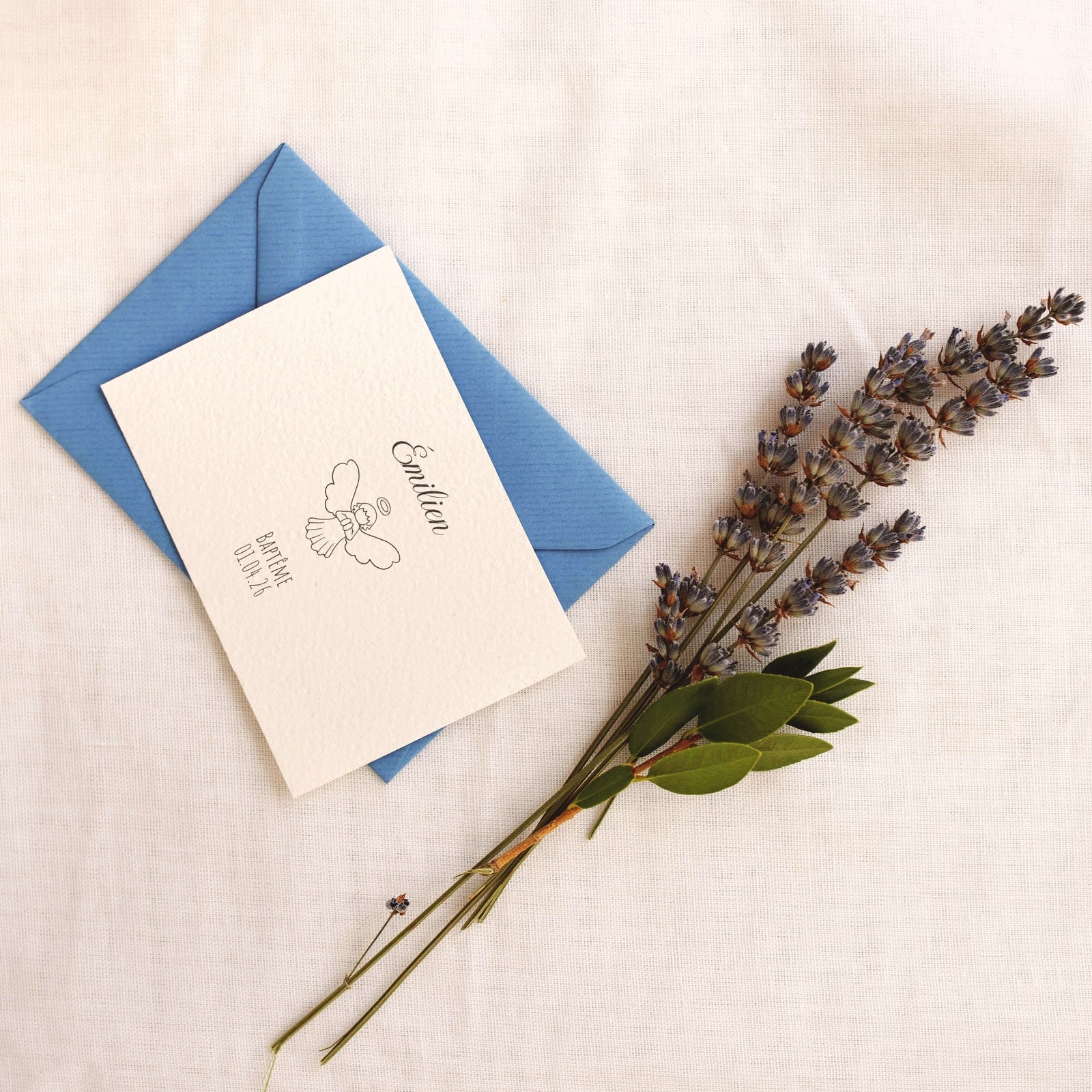 Immortalisez le baptême avec ce tampon délicat représentant un petit ange en prière, parfait pour personnaliser vos souvenirs religieux.