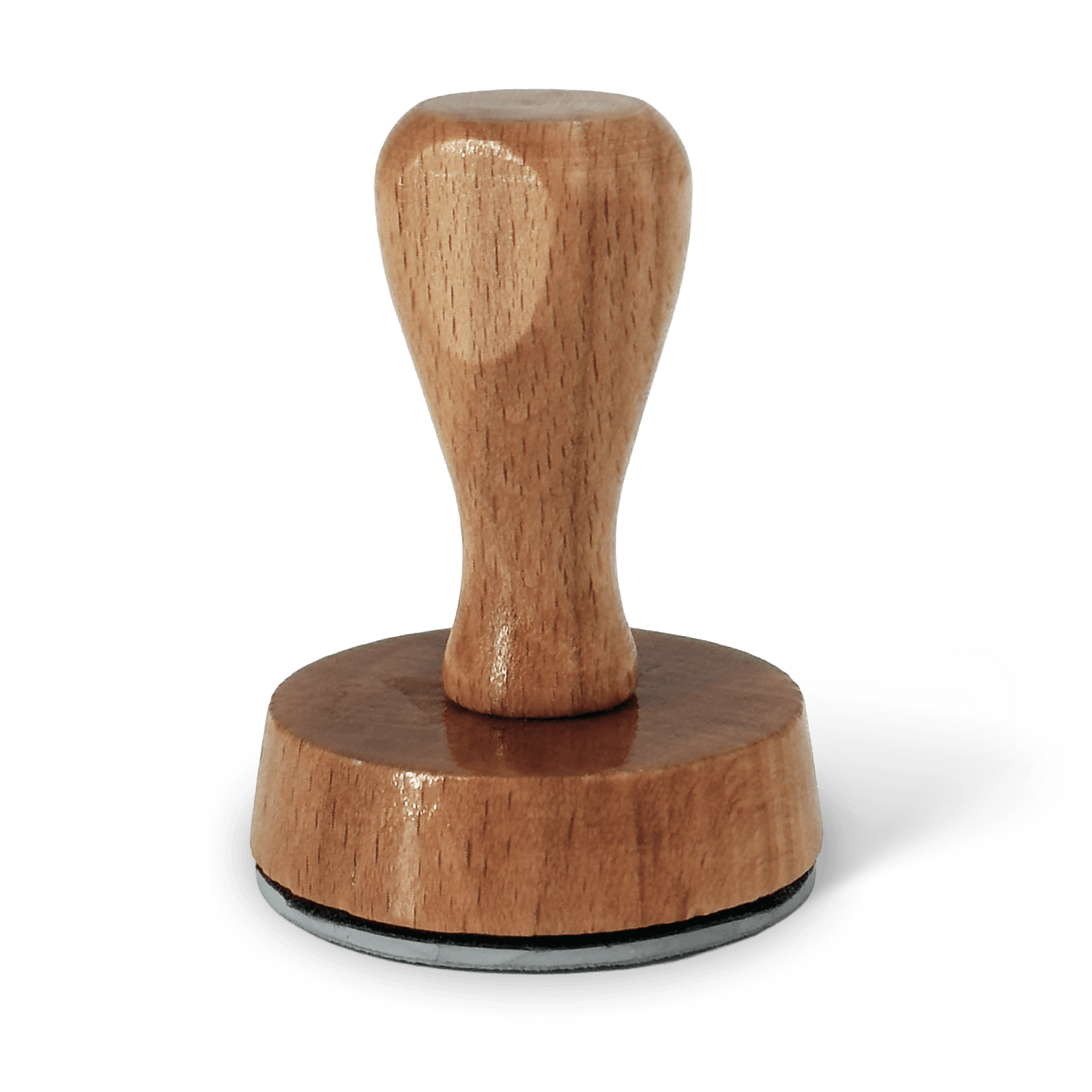 Cette monture de tampon en bois naturel verni offre une prise en main confortable grâce à son manche bombé ergonomique et sa base circulaire de 6 cm de diamètre.