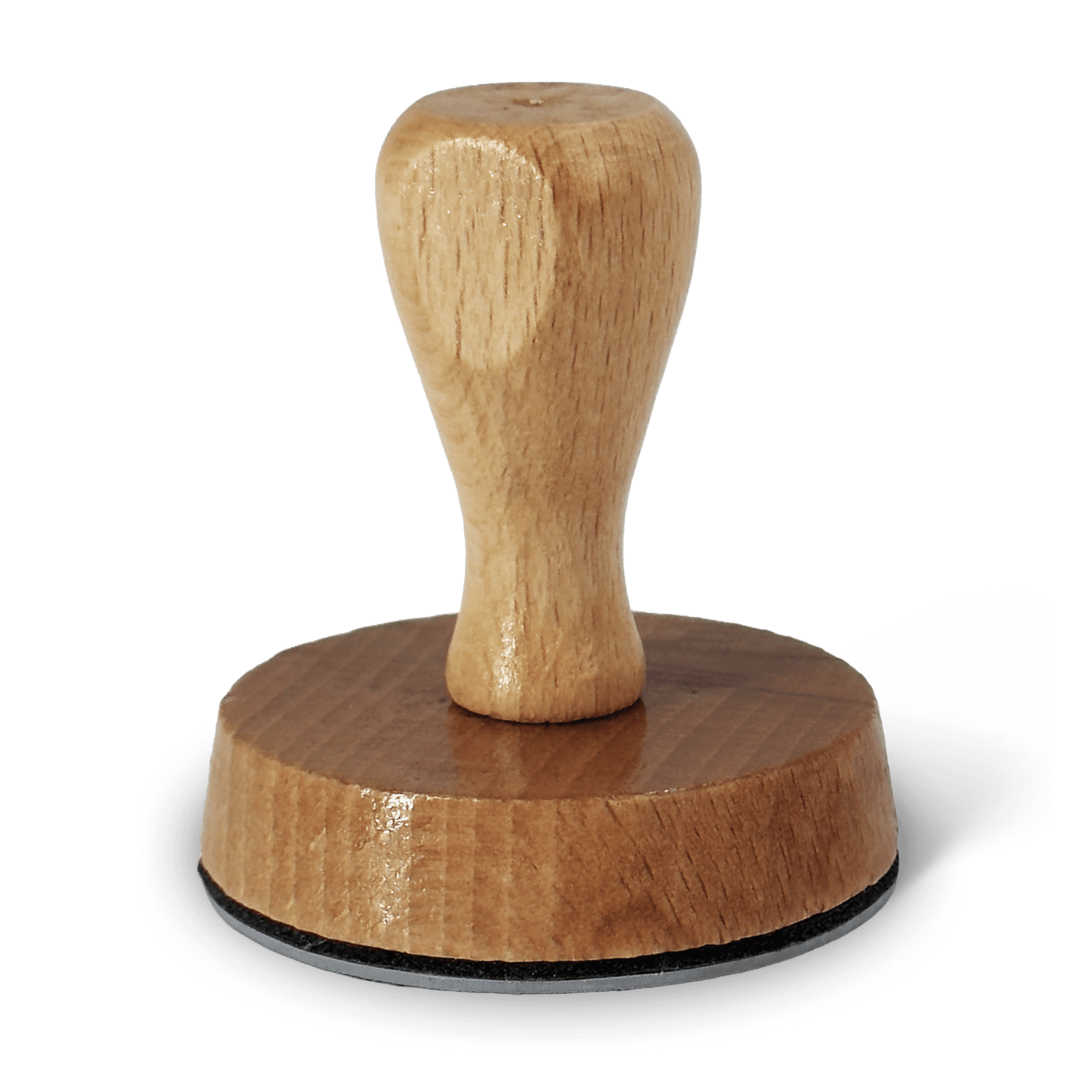 Cette monture de tampon ronde en bois clair offre une prise en main parfaite grâce à sa poignée bombée ergonomique et sa finition vernie teinte miel.