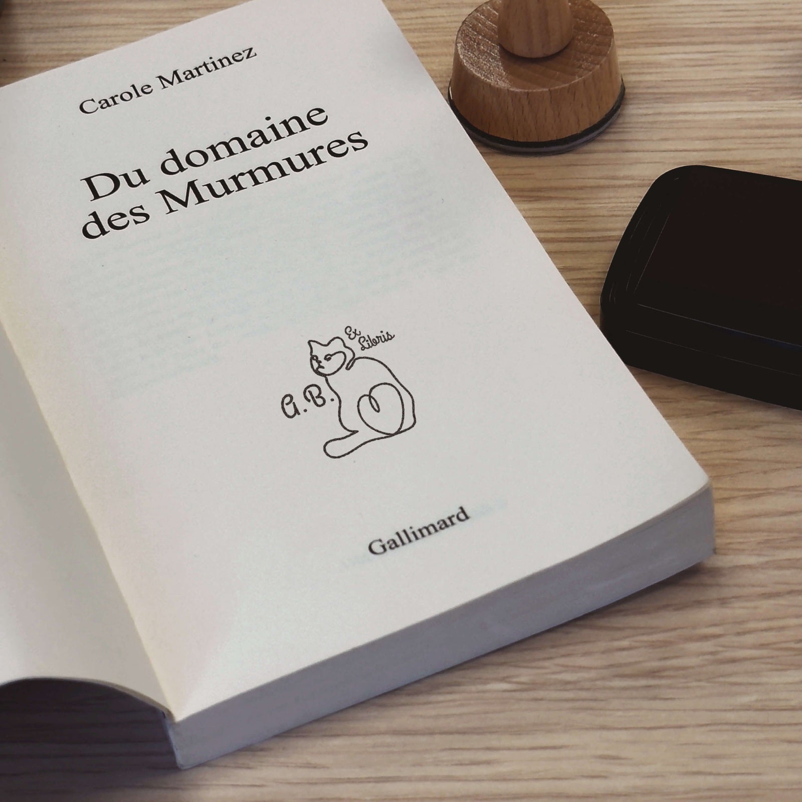 Personnalisez vos livres avec ce tampon ex-libris au design minimaliste, alliant la silhouette épurée d'un chat et vos initiales personnalisées.