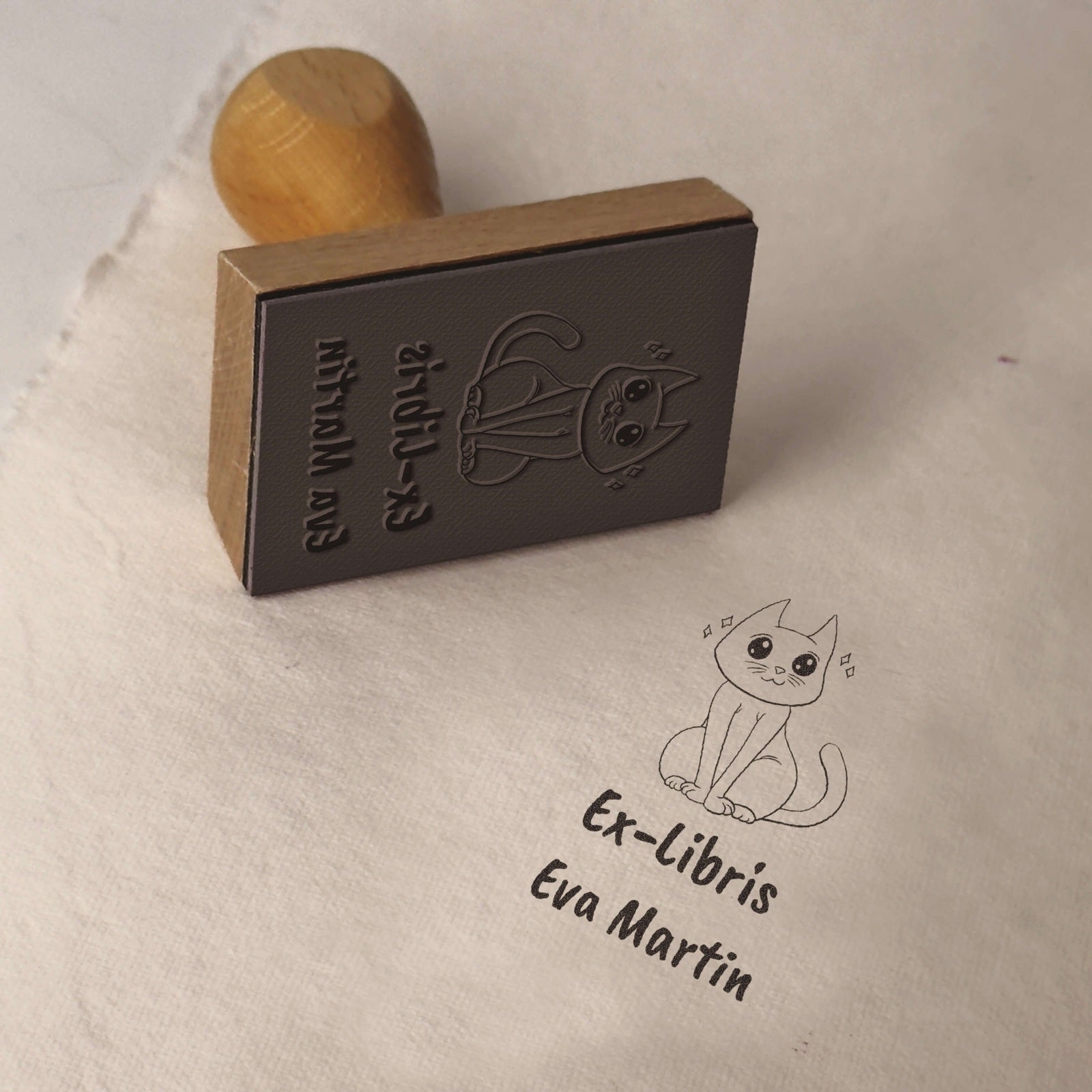 Créez votre marque personnelle avec ce tampon ex-libris au design chat tout doux, parfait pour identifier vos livres avec style et tendresse.