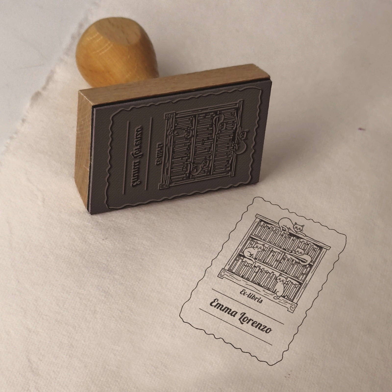 Créez votre ex-libris personnalisé avec ce charmant motif de chats bibliophiles pour marquer vos livres avec style et originalité.