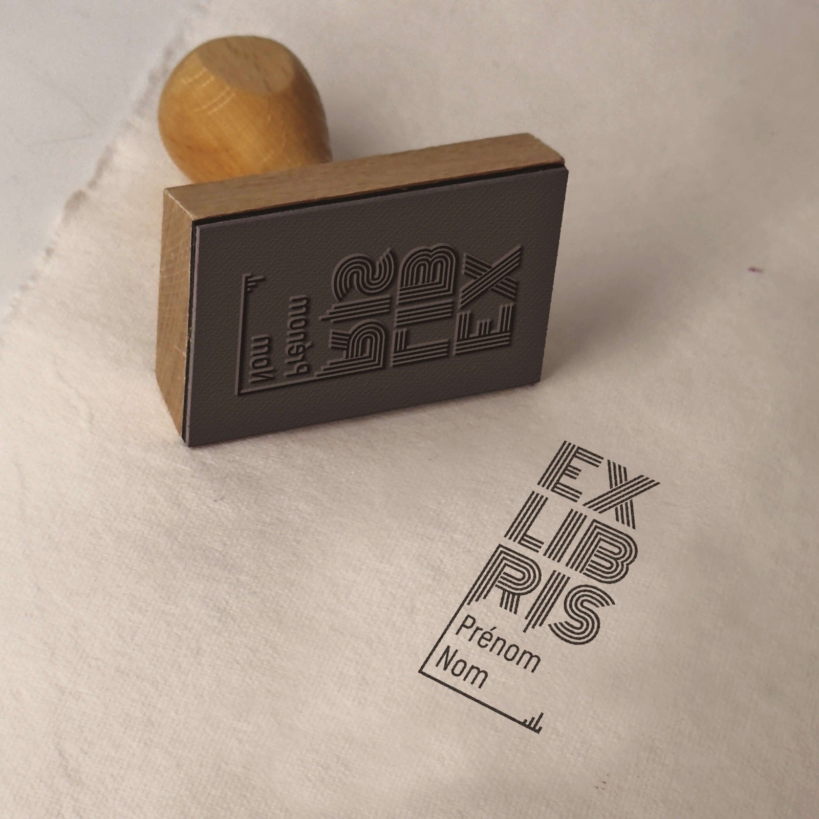 Créez votre ex-libris personnalisé avec ce motif typographique vertical aux lignes parallèles rétro, parfait pour marquer vos livres avec style.