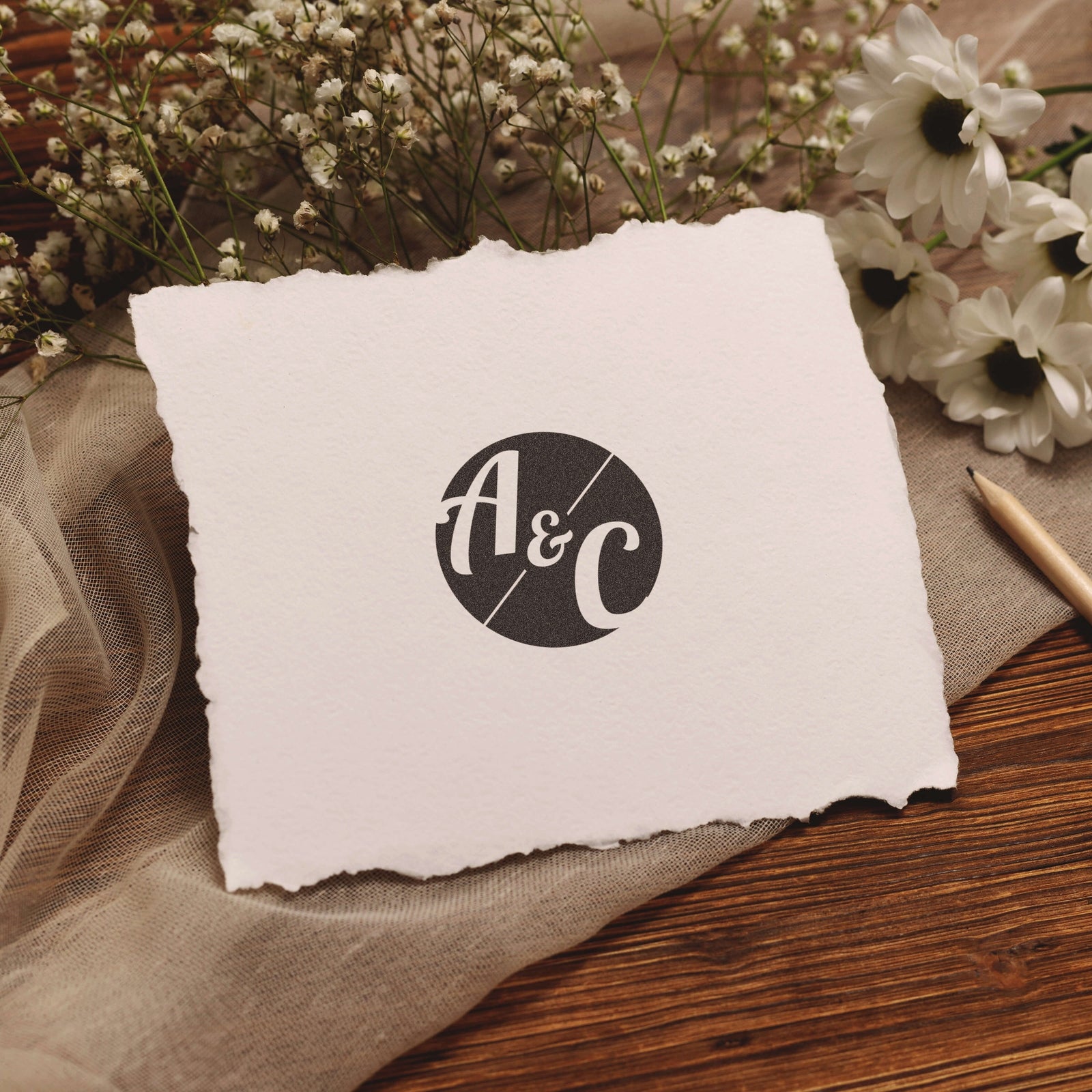 Créez un tampon rond personnalisé avec ce modèle de monogramme raffiné aux initiales entrelacées par une élégante esperluette.